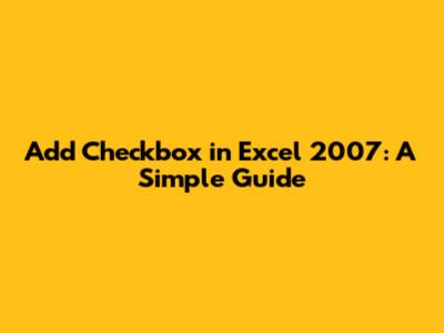 Hey guys! Ever needed to add a checkbox in your Excel 2007 spreadsheet? Maybe you're creating a to-do list, a survey, or just want an interactive way to track progress. Whatever your reason, adding checkboxes can make your Excel sheets way more user-friendly and dynamic. In this guide, we'll walk you through the process step by step. So, buckle up, and let's get those checkboxes rolling!