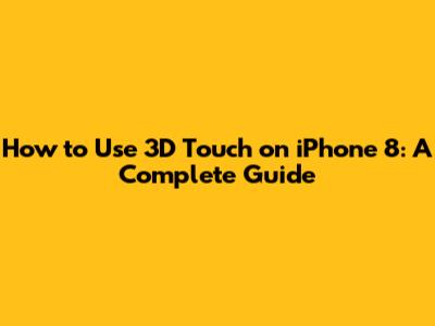 3D Touch is a powerful feature that can significantly enhance your iPhone 8 experience. By mastering the basics and exploring its various applications, you can save time, be more efficient, and get more out of your device. So, go ahead and experiment with 3D Touch and discover all the cool things it can do!