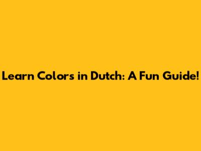 Why Learn Colors in Dutch?